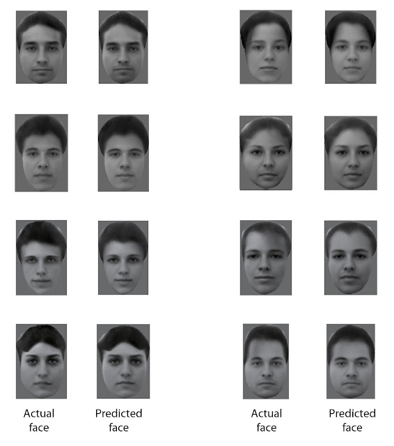 The amazing part is that then working backwards they tried to reassemble faces using the information from firing neurons. They were able to rebuild very accurate versions of the faces that had been viewed. Recognizing faces seems to be a process of breaking faces apart into smaller parts for recognition. We still don't know the whole process. For example, why can we pick out a recognizable face in a crowd?